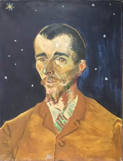 Since I started offering this approach, I have only received one acceptance – for a particularly interesting painting, the subject of this first article: a copy of a famous portrait that Van Gogh titled The Poet. This is a major piece in Van Gogh’s œuvre – it contains his first starry sky and is a portrait that is not truly a portrait. Like La Berceuse or Dr. Gachet, the painter was not trying to depict a person, but rather an idea. In this case, Eugène Boch is playing a role –that of an idealized poet, with refined and noble features, marked by humility, whose mind escapes into the infinite depths of the firmament. I will return to this idea later, but this painting demonstrates that Van Gogh was, above all else, a symbolist of reality.